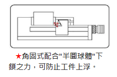 1. 角固式配合"半圓球體"下鎖之力,可防止工件上浮。