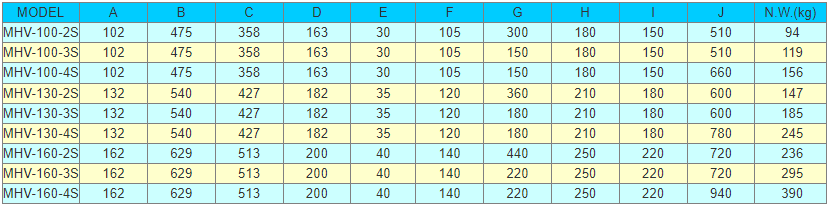 Model ID:MHV-100-2S MHV-100-3S MHV-100-4S MHV-130-2S MHV-130-3S MHV-130-4S MHV-160-