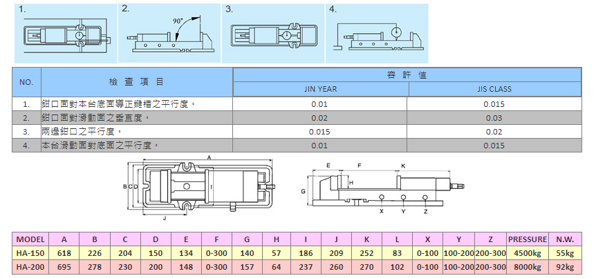 2. 虎鉗本台採用FC30鑄鐵材質。