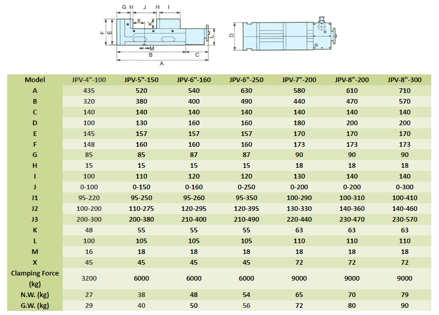 1. 超高夾持力、空壓源8kg/cm²之低壓源,即可達9000kgf之超高夾持力,而夾持力從0-9000kgf由調壓器自由設定。