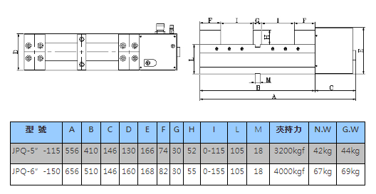 1.超高挾持力、空壓源8kg/cm²之低壓源,即可達4000kgf之超高挾持力。